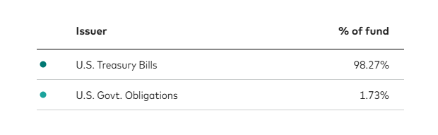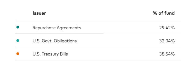 VMFXX (Vanguard Federal Money Market Fund) with a 3.89% yield. The portfolio composition is: